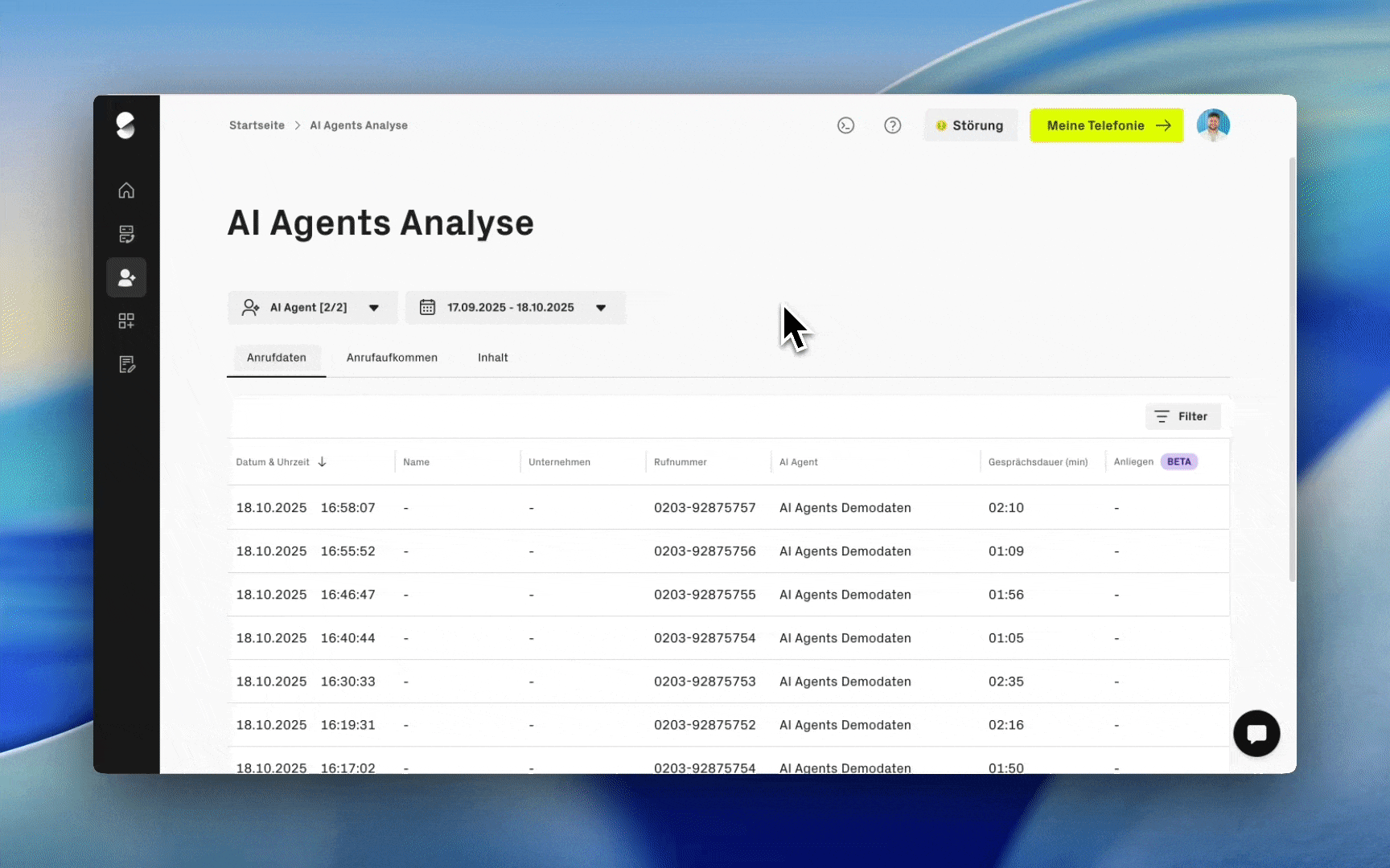 Die Analysen helfen dabei, den Einsatz Ihres Agents zu bewerten und das passende Paket auszuwählen oder anzupassen. Für Details zu einzelnen Gesprächen sind die Gesprächsprotokolle die richtige Anlaufstelle.