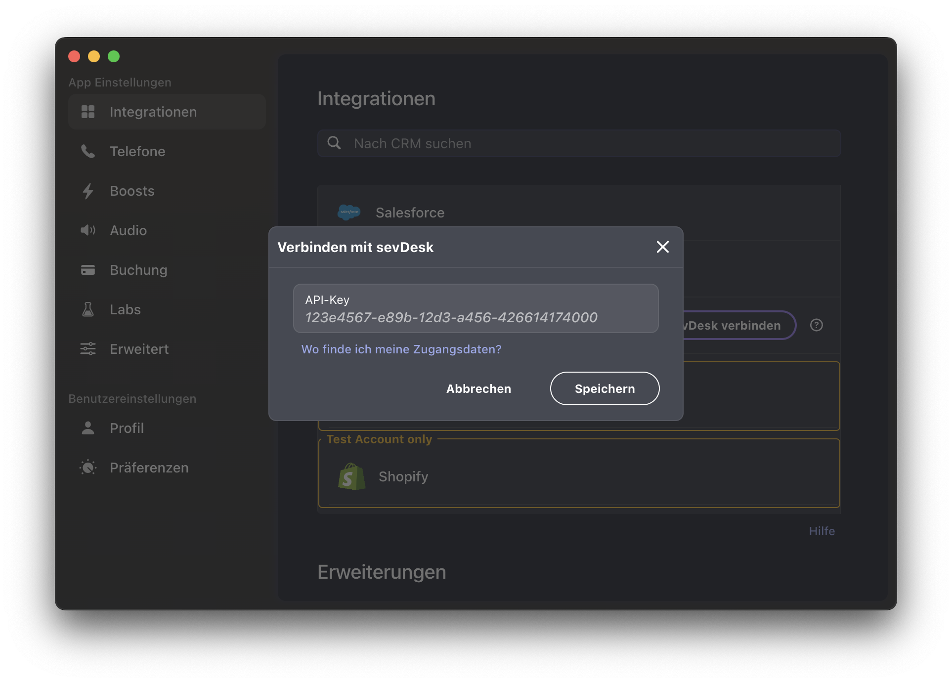 Damit haben Sie sevDesk und die sipgate App erfolgreich verbunden.