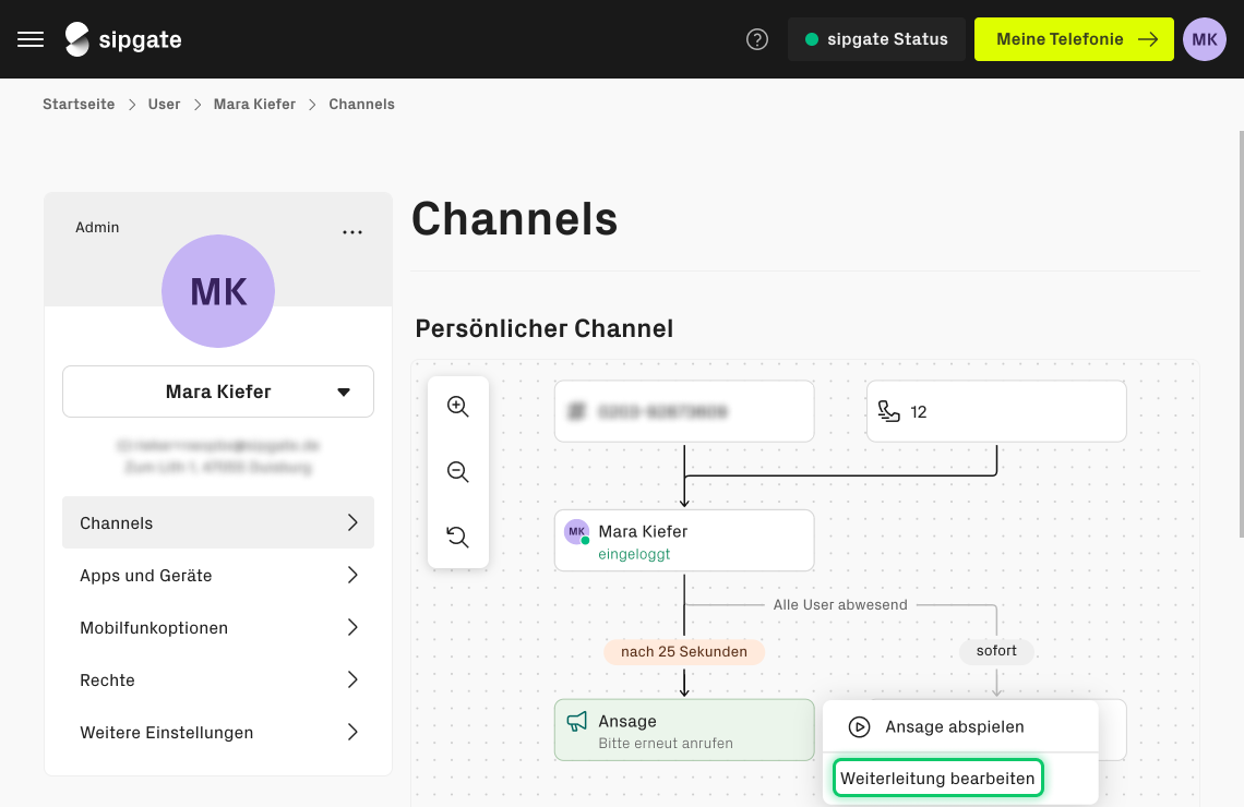 - Öffnen Sie das Channelrouting und bearbeiten Sie die Weiterleitungsregeln.