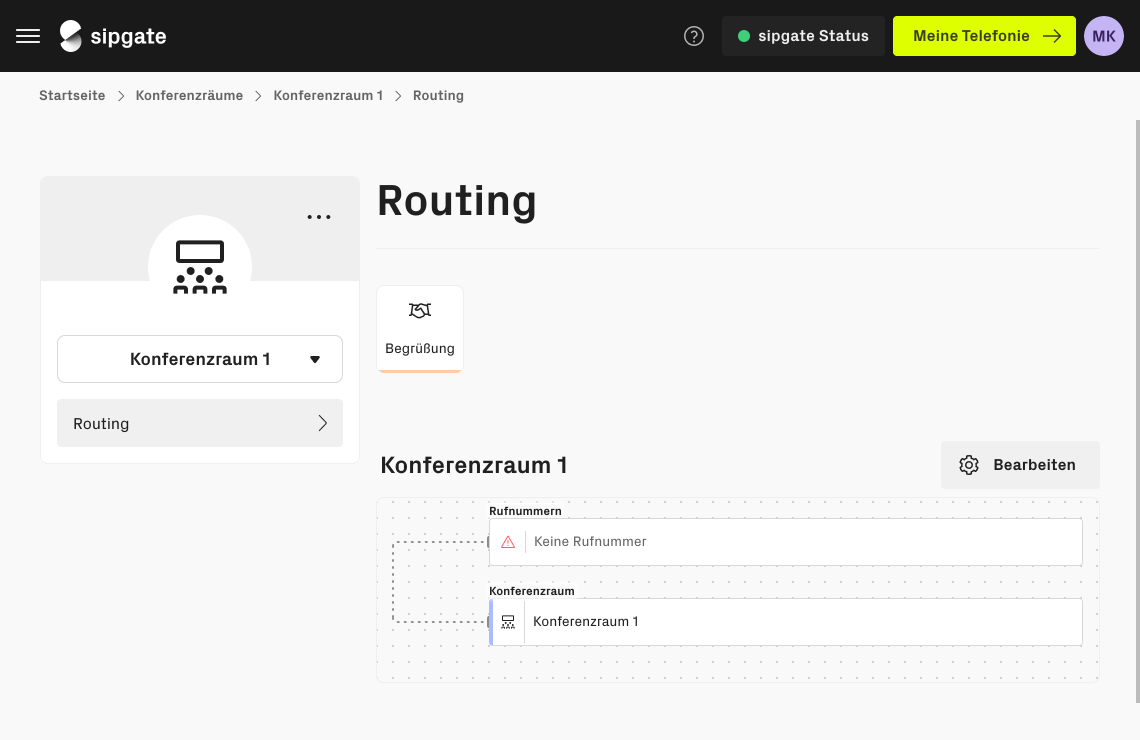 Im nächsten Schritt können Sie den Raum umbenennen und über das Routing eine verfügbare Rufnummer zuweisen.