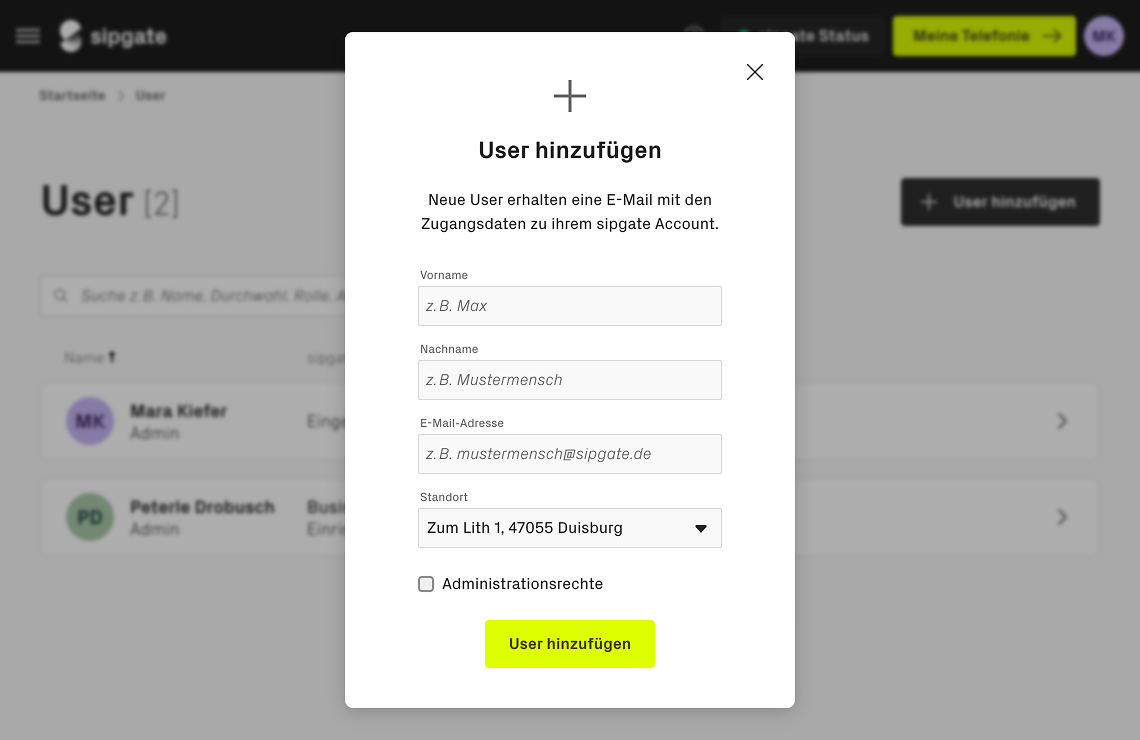 Damit Ihre Mitarbeiter:innen sipgate nutzen können, müssen sie im Account als Benutzer:innen angelegt und eingerichtet werden. Wie das funktioniert erfahren sie im nächsten Schritt.