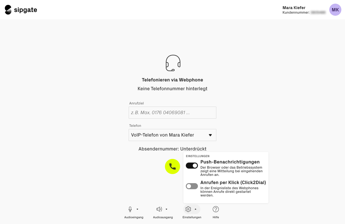 Wie richte ich sipgate Webphone ein?